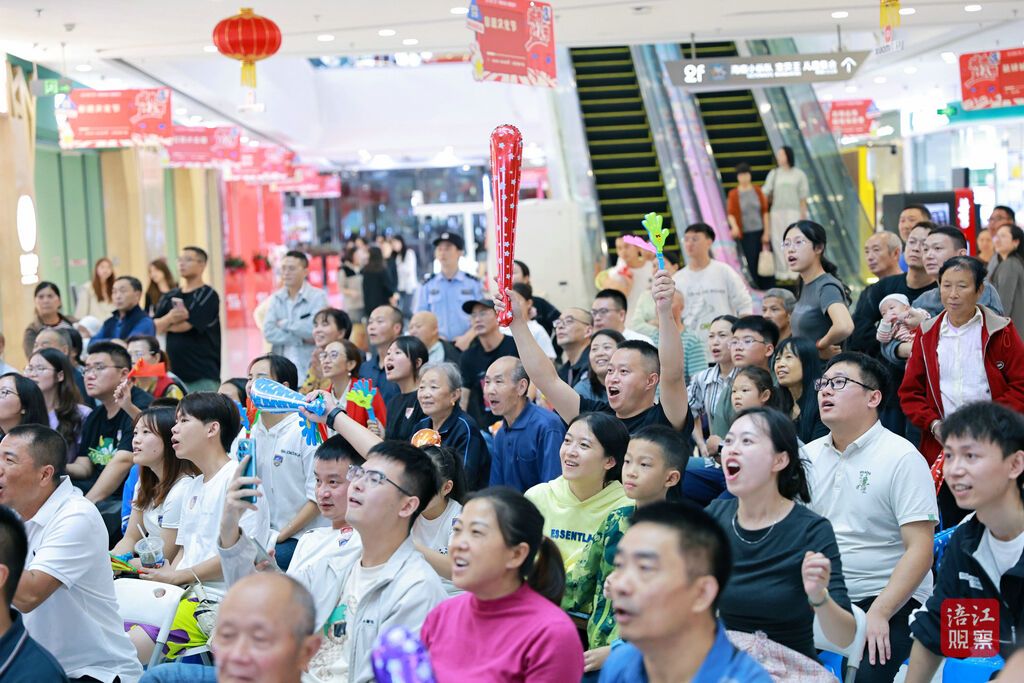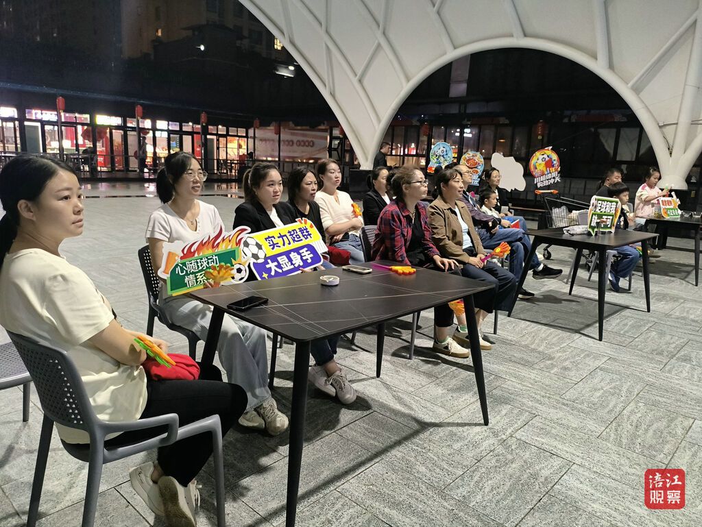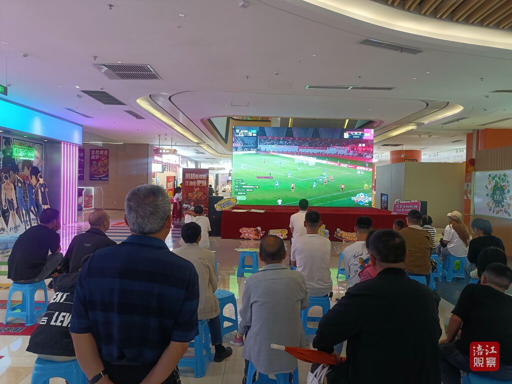 第二观赛点——乐荟城商业广场,实时转播赛况将氛围拉满,球迷们齐聚于此呐喊助威,现场热闹程度丝毫不输主场。
