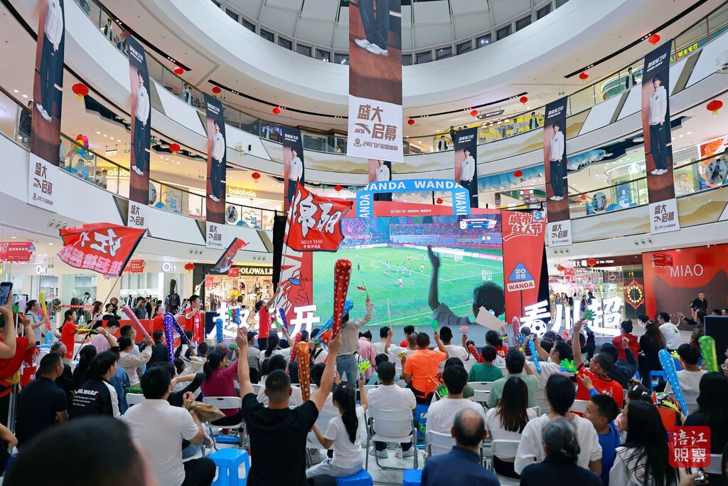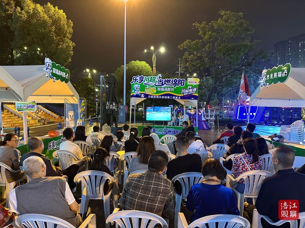 场内燃,场外也不差。绵阳市商务局消费促进科相关负责人告诉记者,川超期间,他们在万达广场、绵州记忆、江油圣名国际广场、三台潼川古城等核心商圈和文旅,设置了19个配备高清大屏、专业音响、舒适座椅的第二观赛点,配套川超主题装饰,互动打卡点和饮品售卖区,让广大市民和游客朋友在户外也拥有一个沉浸式的观赛体验。通过营造赛事+消费场景,将赛事“流量”转化为消费“增量”,全面激发消费市场活力。