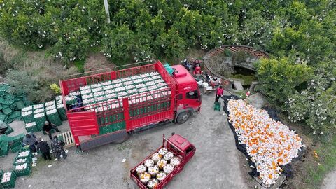 自贡网自贡融媒记者 罗乐 李秋玥 王梓薇 郑皓匀 文/图 连日来,气温回暖,自贡市主要春见产区迎来大规模采收。1月28日,在荣县度佳镇李家嘴村春见核心种植区,金灿灿、沉甸甸的果实缀满枝头,空气中弥漫着清新的香气,呈现出一派繁忙而喜悦的丰收景象。春见皮薄易剥、果肉细腻、汁多味甜、少籽或无籽、风味浓郁,是荣县柑橘的主打品种之一。“四两大小的果子是标准身材,太大或者太小都不受待见。价格每天都有波动,目前每斤在