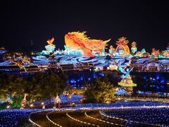 自贡网联络员 陈语诺 自贡观察记者 张美琪 暮色四合,华灯初上。过年间,整个自贡便是华灯一盏。踏入彩灯大世界,夜幕四合时,古典与前卫悄然相逢。 挤进人潮,朱红色的“华结映门”迎面而来,以中国结的造型,热烈而庄重,接纳八方来客。 《华结映门》灯组行至“福禄双至”灯组前,时空忽然柔软下来。葫芦形灯廊蜿蜒而去,琉璃盏盛满温润灯光,在夜色里流淌成河。 《福禄双至》灯组福字灯藏于藤蔓间,禄字灯悬于枝叶之上,晕染