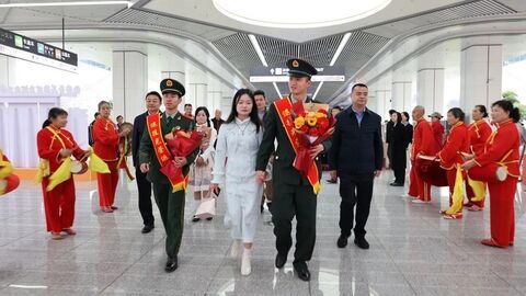 自贡网黄琼 自贡融媒记者 王乐乐 3月1日,高铁自贡站热闹非凡。当天,自贡迎接退役士兵光荣返乡欢迎仪式再次升级。当首批2026年春季退役士兵来到出站口时,迎接他们的是热情服务的老兵、腰鼓队等,还有搬进月台的红色画展,另有党课讲师现场授课、“战友导师团”亲传经验。退役士兵抵达后,自贡“江姐老兵”志愿者迎上前,主动接过行李、引导其前往服务专区。那里,由功臣模范、最美退役军人、就业创业退役军人代表组成的“战友