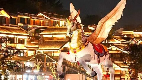 自贡网自贡融媒记者 周姝 2月18日,农历正月初二,记者沿着釜溪河漫步,远远便望见一匹28米长的巨型飞马展翅凌空。“哇,这也太震撼了!”来自成都的游客李女士举起手机,连连按下快门,“没想到偶遇这么有艺术感的老街,这匹飞马一定要发朋友圈。”循着此起彼伏的惊叹声,记者走进焕新亮相的自流井老街。作为全新亮相的城市会客厅,河岸水街占地13亩,建筑面积约5000平方米,由中心广场、老街艺廊、善后桥码头和夜游码头等