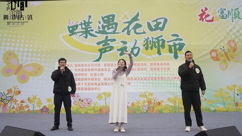 自贡网自贡融媒记者 周嘉 文/图 “会唱的朋友一起来……”3月8日上午,富顺县狮市镇花园坝油菜花田核心区格外热闹。台上,乡村歌手倾情放歌,台下,里三层外三层的乡亲们喝彩声、跟唱声此起彼伏。当天,“花开富顺——蝶遇花田·声动狮市”村K大赛暨航天亲子运动会在这里举行。“乡亲们,上午好!这首歌送给大家!”罗寺村村民张永强率先走上舞台,深情唱响《妈妈的手》,质朴的歌声饱含对母亲的眷恋,让台下不少观众红了眼眶。随