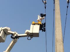 自贡网张魏里 袁丹 自贡融媒记者 蒋秀梅 11月28日上午,国网自贡供电公司在10千伏板科线57号杆接地环带电安装作业中,首次启用双臂人机共融配网带电作业机器人并圆满完成任务,自贡配网带电作业迈向智能化新阶段。 带电作业机器人“上岗”中该机器人由金属框架、绝缘外壳及电子元器件构成,电力员工通过地面手持终端即可实现状态监控与遥控操作,可完成带电接断引流线、安装接地环、故障指示器、驱鸟器、修剪树枝等配网带电