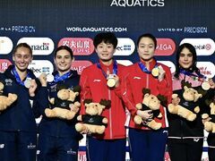 自贡网自贡融媒记者 陈凡逸 2月26日至3月2日,2026年世界泳联跳水世界杯加拿大蒙特利尔站结束比拼,由市运动技术学院培养和输送的运动员陈佳、杨志豪发挥出色,为中国跳水队斩获3金1银,用实力展现盐都体育风采。 陈佳(右三)站上领奖台此次赛事中,陈佳搭档队友斩获混合团体、女子双人3米板两枚金牌,同时获得女子单人3米板银牌;杨志豪搭档赵仁杰摘得男子双人10米台金牌,两位运动员在国际赛场上沉着应战、奋勇拼搏