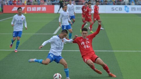 自贡网自贡融媒记者 芶思 11月1日下午,2025赛季四川省城市足球联赛(川超)川南赛区第七轮比赛打响,自贡灯城燊龙队客场与内江重龍酒队在雨中激战。最终,自贡灯城燊龙队以3:2战胜对手,取得首个客场胜利,总成绩延续不败纪录,继续领跑川南赛区积分榜。比赛当天,尽管天公不作美,阴雨绵绵,但内江主场球场座无虚席,气氛热烈。比赛开场第5分钟,自贡队中前场就通过一次传切配合,由18号万峻名轰出一脚势大力沉的射门,