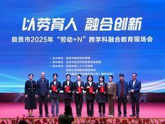 自贡网自贡融媒记者 陈凡逸 10月31日,自贡市2025年“劳动+”跨学科融合教育现场会在市弘润鸿鹄外国语学校举行,与会嘉宾共同探索中小学劳动教育与学科课程深度融合的新路径。 为优秀教师颁奖劳动实践课程展示会前,与会嘉宾来到市第二十八中学校,参观劳动教育示范校、观摩“校园劳动节”;四川蜀蓝农业发展有限公司,参观劳动教育实践基地、观摩“劳动+”现场教学展示活动;市弘润鸿鹄外国语学校,观摩自流井区劳动工作坊