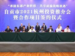 自贡网自贡网记者 廖蓝蕾 陈凡逸5月19日上午,自贡在杭州美丽的西子湖畔隆重举行以“承接东部产业转移·共享成渝战略机遇”为主题的自贡市2021杭州投资推介会暨合作项目签约仪式。现场签约涉及文化旅游、装备制造等产业领域的12个项目,总投资113.2亿元。受自贡市委书记范波委托,市委副书记、市长曾洪扬致辞。100余位国内外知名企业、有关商协会负责人参加投资推介会,共同谱写深化合作、互利共赢新篇章。