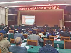 自贡网自贡网记者 张翠娜4月16日,市国资委系统举行党史学习教育专题宣讲会,邀请市委党校管理学教研室副主任、副教授、党史学习教育市委宣讲团国有企业宣讲分团成员王贵锌做专题报告。市国资委党员干部、退休班子成员和国资委监管企业分管领导、部门负责人等约80余人聆听宣讲会。王贵锌教授以“百年恰是风华正茂——中国共产党百年奋斗历程及经验启示”为题,分党史教育的重大意义、百年党史的基本脉络、百年党史的经验启示3个部