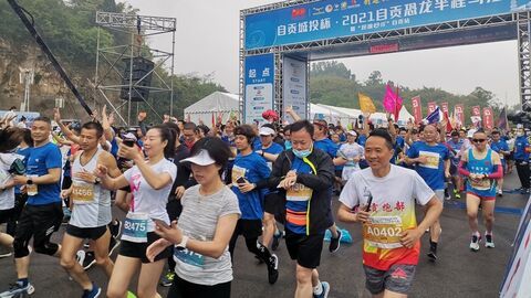 自贡网自贡网记者 缪静4月11日,由四川省体育局、自贡市人民政府主办的自贡城投杯·2021自贡恐龙半程马拉松暨“跑遍四川”自贡站(以下简称“自贡马拉松”)在大安区青龙湖燃情开赛,共吸引4800余名马拉松运动爱好者参与,在线观看人数达到1000万人次。这不仅是带有自贡烙印的马拉松赛事,也是大安区以赛为媒,促进文体旅融合高质量发展,助创天府旅游名县的有效探索。上午9时,开赛笛声响起,2000名“半马”和28