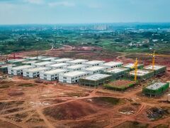 自贡网自贡网记者 卜一珊 宋姿熠3月22日,记者来到中国西南(自贡)食品产业园,这里一片繁忙的施工景象,35栋标准化厂房已经拔地而起,其中17栋厂房已完成了外墙装饰。预计今年5月,四川千般就食品有限公司将率先投产。四川千般就食品有限公司投资占地面积47.5亩,总投资12000万元,主要经营速冻食品制造、冷却肉分割加工、鲜肉分割加工、水产品冷库加工等,配套建设三条生产线。目前,已建设完成标准化厂房2栋,正