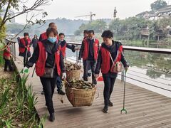 自贡网自贡网记者 李秋玥绿水青山就是金山银山,为推进生态文明建设,在3月9日,保护母亲河日当天,自流井区五星街高山井社区发动50余名“568”志愿者、社区党员志愿者、自贡市人力资源和社会保障局、自贡市交通银行、自流井区文化广电和旅游局和自流井区住房保障中心在釜溪河沿岸开展保护母亲河行动,对沿河的垃圾、枯枝进行集中清理,并就保护母亲河、共同参与生态文明建设向市民群众和孩子们发起倡议。记者在现场看到,志愿者