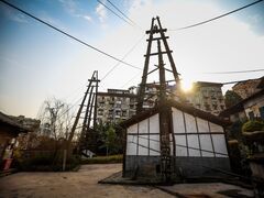 自贡网自贡网记者 张翠娜 摄影 宋姿熠在大安区杨家冲上凤岭一大片居民区的环抱中,有4架天车傲然独立。它们构成了世界上唯一现存盐井和天车最密集的区域,成为追忆千年盐都天车林立、盐井遍布盛景的一处遗存地。这里就是由吉成井、裕成井、益生井、天成井4口盐井组成的吉成井盐作坊遗址。2020年12月底,吉成井盐作坊遗址被列入第三批四川省工业遗产项目,让人们再次将目光聚集到了这个有些陌生的地方。见证盐业辉煌 古盐场成