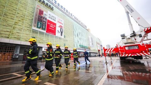 自贡网自贡网记者 张才 摄影 宋姿熠2月25日下午,自贡市消防救援支队大型商业综合体灭火实战演练在红星美凯龙家居广场举行,通过内攻灭火、人员疏散、浓烟环境搜救、举高喷射出水、不间断供水等科目的综合灭火演练,进一步检验自贡市消防救援队伍应对大型商业综合及人员密集场所火灾的各项准备工作,全力提高全市消防救援队伍防大灾、打大火的能力。据悉,共有来自7个消防救援站的17辆消防车、68名消防指战员参与了此次实战演