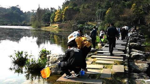 自贡网自贡网记者 周姝春节假期,大批游客走进卧龙湖湿地公园游玩。2月12日,记者走访发现,园区整体环境相对整洁,大部分游客都能遵守秩序爱护环境,但仍有一些不文明旅游的现象出现,为美丽的风景带来了一些“不美丽”的画面。公园内不少栏杆和树木旁边设有“禁止攀爬”和“禁止垂钓”的标牌,但仍有市民拿着鱼网、提着水桶,不顾落水危险,在池塘中捞鱼和小虾;一名小孩在树上爬上爬下的,一会儿拉低树枝,一会儿踩着树枝;还有人