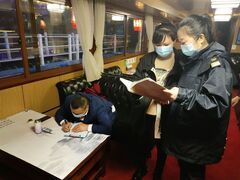 自贡网自贡网记者 罗乐“请戴好口罩,扫码并测量体温后登船。”“上船的乘客请穿好救生衣。”春节假日期间,在釜溪河茶堂子旅游码头,这是每晚坚守在这里的海事人员说得最多的两句话。为确保人民群众安心过节、开心游览,市交通海事系统严格落实中央省市安全工作和疫情防控要求,提前部署,春运前海事部门对拟投入运营的船舶进行“体检”,对消防救生设施设备进行查验,对驾驶人员开展安全教育培训,确保“船适航、人适任”,同时每晚安