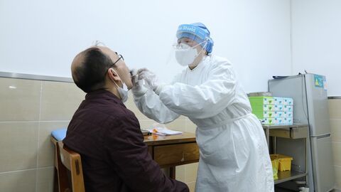 自贡网自贡网记者 卜一珊 摄影 罗祥瑞对医疗机构来说,发热门诊是阻止疫情蔓延的第一道防线,承担着排查疑似患者的重任。春节期间,全市的发热门诊24小时值班,医务人员放弃假期坚守岗位,筑牢疫情防控的第一线。2月17日,农历大年初六。上午9点30分,记者来到自贡市第一人民医院的发热门诊看到,大门口标识清晰、流程明确。所有的医护人员“全副武装”,正在紧张有序忙碌着。在一旁的休息区,还有三名患者正在耐心等待核酸检