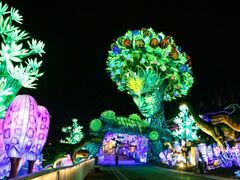 自贡网记者 周姝《奇幻侏罗纪》灯组围绕“恐龙时代”主题打造穿越时空的梦幻场景,融合亲子互动、科普互动、光影互动等内容,让人身临其境。灯组演绎了陨石坠落、生命起源、穿越时空回到过去的故事场景,穿越三叠纪-侏罗纪-白垩纪三个时代的奇幻历险记。其中,“陨石坠落-生命起源”为主题区域第一个场景,灯组将作为文创店,高10米,占地144平米,体现了陨石坑遗迹的场景;随后“穿越时空-新时代”场景则进入三叠纪时期