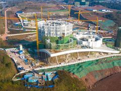 自贡网自贡网记者 李秋玥 摄影、视频 叶卫东1月12日,记者来到位于东部新城的自贡展览中心项目一期工程建设现场看到,展览馆、城市书吧、多功能会议厅和45米高观光塔等全面成型,部分工人正在进行外幕墙的装饰。该项目预计2021年春节前竣工。市委、市政府高度重视,备受关注的自贡展览中心项目位于东盐都大道以南,釜溪河以北,由自贡城投集团作为项目业主投资建设。项目占地约42亩,总投资约4.9亿元,主要建设展览馆、