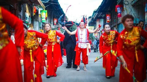 自贡网自贡网记者 张才 摄影 宋姿熠“朝朝暮暮啊——思啊——梁啊——兄啊——”11月11日,农历9月26牛佛逢场(逢双)。古镇油房街一家老茶馆里正上演川剧高腔《思兄怨媒》(梁山伯与祝英台选段),男女一唱一和,声音咿咿呀呀绕过了半条街,习以为常的本地人听得摇头晃脑,外地游客乍一听倒起了鸡皮疙瘩。大安区牛佛镇文化底蕴深厚,是“国家级历史文化名镇”“四川民间文化艺术之乡”。近年来,划龙舟、舞龙灯、打连枪、牛儿