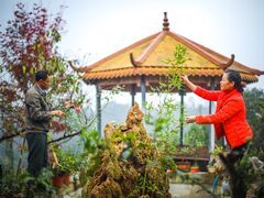 自贡网自贡网记者 李秋玥 摄影 宋姿熠白墙青瓦铺屋顶,邻水相依满庭芳。一个“远望像林园,近望像花园,细看是生活在幸福乐园”的美丽景象出现在贡井区莲花镇白仓村2组一座山顶。“春有花、夏有荫、秋有果、冬有绿已经成为现实。”在山顶管理着果树的李荣威与爱人甄秀兰骄傲地告诉记者,10年时间,他们将自己的家园打造成理想的家。如今,农家“小庭院”已经成了致富增收的“小产业”,通过“小果园、小菜园”的庭院经济发展模式,