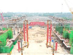 自贡网自贡网记者 李秋玥 宋姿熠10月26日上午10点,随着现场指挥人员一声令下,川南城际铁路自贡东站站房高架站房钢结构屋盖开始整体提升。600吨重的钢架屋盖经过近3个小时提升,准确无误地与侧式站房屋盖实现对接,标志着自贡东站项目高架站房主体结构封顶,高铁自贡东站整体轮廓初现,进入装饰装修阶段。据介绍,自贡东站站房钢结构屋盖分为侧式站房区域屋盖与高架站房区域屋盖。高架站房区域屋盖采用倒三角管桁架,侧式站