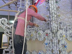 自贡网自贡网记者 周姝坐落在彩灯公园内的中国彩灯博物馆已经开馆26年,为进一步做好展示服务,提升参观体验,营造更加安全舒适的参观环境,10月21日至11月20日期间,彩灯博物馆暂时闭馆“美容”,并将于11月21日以更新更美的面貌,欢迎四海宾朋。10月23日,记者走进彩灯博物馆时见到,保洁师傅们有的在给地面打蜡、抛光,有的正在擦拭着立面玻璃,有的在修剪枝丫。博物馆内,专业制灯技师正在对《瓷器宫灯王》《龙凤