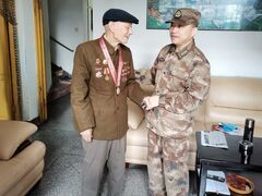 自贡网自贡网记者 叶艳在中国人民志愿军抗美援朝出国作战70周年之际,10月23日,自贡军分区政委李塘来到自贡离职干部休养所,走访慰问抗美援朝老干部,代表自贡军分区党委和全体官兵向健在的志愿军老干部致以崇高的敬意和诚挚的问候。今年95岁高龄的张廷宝,抗美援朝期间任64军129师作战参谋。李塘来到他家中,为他佩挂“中国人民志愿军抗美援朝出国作战70周年纪念章”,并送上慰问品,向他表示由衷的敬意,希望老人保重