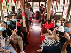自贡网自贡网记者 欧亚非10月1日,我市新近运行的仿古观光车“铛铛车”推出“国庆号”体验车,喜迎国庆,受到市民欢迎。红色的车身,车头醒目的“国庆号”字样,车窗上“欢度国庆”的剪纸窗贴;车内,护手杆上整齐的小红旗,每位乘客发放的手持红旗,把国庆的气氛点缀得十分浓厚。“国庆节,带着孩子坐国庆号,举着小红旗留影,打卡我们自贡的景点,感觉很有意义。”“最近,朋友圈被这一辆辆造型别致、仿古的‘铛铛车’刷屏了”“国