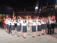 自贡网自贡网记者 卜一珊10月1日晚,夜幕降临,华灯初上,自贡高投集团有限公司51名党员职工齐聚南悦里音乐喷泉广场,用歌舞、朗诵、书法礼赞的方式,高声歌唱《新的天地》,把对祖国的美好祝愿通过歌声传递,用青春风采祝福祖国。特殊的日子,用特殊的方式,为祖国献上赞歌。青春舞蹈《爱我中华》表达对祖国的爱;合唱歌曲《新的天地》唱出建设祖国的激情澎湃;原创歌曲《我们一起前行》唱出努力奋进的最强音。自贡高投集团党员职