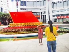 自贡网自贡网记者 廖蓝蕾今天是国庆节,盐都处处洋溢“中国红”。春华广场内摆放的“热烈庆祝中华人民共和国成立71周年”大型国旗花台鲜艳夺目。一名带着红领巾的小姑娘娘蹦蹦跳跳向前,在国旗下敬了一个标准的少先队礼,妈妈用手机定格了这个美好瞬间。
