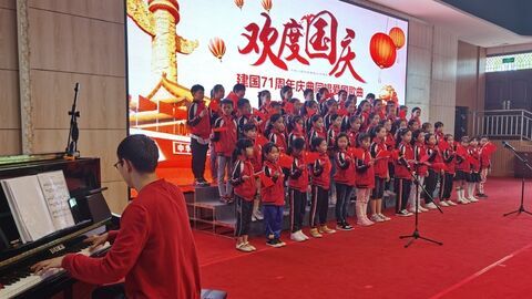 自贡网自贡网记者 张翠娜 “我和我的祖国,一刻也不能分割……” 9月30日,在自贡市板仓实验学校,各班级里飘扬出孩子们稚嫩而悠扬的歌声,这是学校开展的"同唱爱国歌曲,共庆祖国生日"主题教育活动。《我爱北京天安门》《我和我的祖国》……在老师的带领下,同学们一边跟着教学音乐合唱,一边挥舞手中的国旗,用歌声表达对祖国的祝福。在学校阶梯教室,50余名学校合唱队的学生高唱