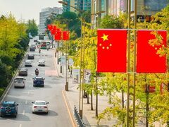 自贡网自贡网记者 李秋玥 宋姿熠随着“十一”国庆节的临近,自贡庆祝新中国成立71周年的氛围也逐渐浓烈起来,许多细心的市民发现,不少道路两旁的路灯杆都挂上了鲜艳的五星红旗,使“中国红”成为市区一道靓丽的风景。9月30日,记者在丹桂大街、龙湖大道等主街看到,一面面国旗,户外广告牌、LED屏显示的内容更是凸显出浓郁的节日氛围。不少路过的市民,从国旗下走过,特意掏出手机,笑着与国旗一起合影留念。“这两天我走在大