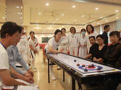 自贡网自贡网讯 (记者 张翠娜) 19日上午,自贡市第二届老年人桌上冰壶球比赛在市老年大学拉开帷幕,吸引了全市12支代表队、120名老年运动员参加比赛,共享这一创新体育项目的运动乐趣。桌上冰壶球由冰壶运动演变而来,以特制球桌作为赛道,双方用迷你版冰壶对垒,其比赛规则基本和冰壶规则一致。本次比赛由自贡市老年人体育协会主办,分为团体赛和双打赛两个项目,为期2天。比赛中,运动员们聚精会神推球对垒,每当打出一记