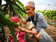 自贡网9月3日,位于富顺县永年镇马家村的火龙果种植基地里,一排排果树整齐地架在支架上,青绿色的枝叶和红色的果实交相映衬,还有不少未成熟的青色果子挂满枝头。进入采摘期的火龙果吸引了不少市民前来观光采摘。基地的负责人李彬是一名返乡创业农民。去年,李彬投入100多万元,建设具有温控、滴灌功能的高标准水果大棚,尝试种植火龙果。“现在有近30亩火龙果。”李彬说,今年基地初投产,一亩地年产量4吨左右,预计明年可以达