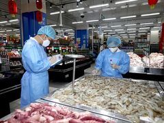 自贡网自贡网讯(记者 卜一珊)为防范冷链食品新冠病毒污染风险,巩固我市疫情防控成果,近日,市、县、区疾控中心深入大型超市、农贸市场、餐饮店铺等场所,对市场环境和冷链食品样本进行新冠病毒核酸检测,累计采集样品80份,检测从业人员40人,核酸检测结果均为阴性。在沃尔玛超市,疾控人员穿上防护服,戴好帽子、口罩、手套,用采样拭子对超市海鲜专柜的冷冻鸡翅表面及外环境进行涂抹采样,并对超市冷藏库里的冷冻鸡翅外包装进