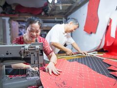 自贡网从背着缝纫机上门找生意,到开公司,这条路,贡井区艾叶镇檬坳村村民赵兴元和杨正华夫妻俩,走了30多年,他们用勤劳的双手,白手起家,搭建起了一座致富金桥。下定决心 踏上外出求学路8月13日,细雨纷纷,自流井区马吃水新堰塘小区内的一家汽车内饰加工坊里,一片繁忙,八台新式缝纫机马不停蹄,几名工人忙而不乱,开边、磨皮、裁剪,一块块面料在缝纫机板上来回穿梭,正在为一批新订单加足马力。这家加工坊是赵