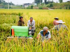 自贡网立秋以后,气温上升,全市120多万亩水稻随着高温天气日渐成熟。我市水稻收割作业全面展开,粒粒归仓的稻谷为保障粮食安全筑牢基础。8月11日,富顺县龙万乡五余村,脱贫户李家文的稻田里,稻谷收割热火朝天。获悉将出现暴雨天气过程的消息,李家文赶紧请来堂兄堂弟抢晴帮忙收割水稻。今年除了自家2亩稻田满栽满插,李家文还把外出务工村民闲置的4亩田利用起来,种上高产优质稻。李家文告诉记者,今年的收成好,打下来有40