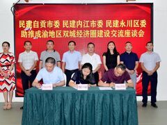 大安区纪委监委自贡网讯(何垚 记者 王乐乐)7月23日,自贡市政协副主席、民建自贡市委主委王孝谦率"内自同城化发展民建企业家协作联谊会"自贡内江两地部分会员企业家赴重庆市永川区开展“融入双城·民建企业家协作联谊”考察活动,与民建重庆市永川区委签署助推川南渝西融合发展试验区建设三方友好合作协议。活动中,三方就加强三地民建组织深度合作,资源共享,合力助推川南渝西融合发展试验区建设,助力三市区融入