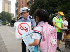 自贡网自贡网讯(记者 叶艳)7月16日,全市“黄丝带”交通文明劝导志愿服务活动在沿滩区拉开帷幕。当日下午5点多,头戴“小黄帽”、身着“绿马甲”的20多名交通志愿者,在沿滩区交警大队副大队长陈翠微带领下,在高新医院红绿灯十字路口开展了“斑马线礼让行人”交通劝导实践。他们用写有“礼让行人 安全文明”字样的模拟手型KT板引导过往车辆在行经斑马线时主动减速停车、礼让行人,并通过宣传资料发放和讲解引导的方式,提醒