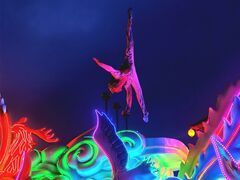自贡网自贡网讯(记者 周姝)“彩灯千载触目红,火树银花不夜天”,7月4日晚,中华彩灯大世界内灯光璀璨,观灯的市民接踵摩肩,脸上洋溢着欢乐的笑容,这就是自贡市民对彩灯的热爱。园区内文艺小舞台上正表演着精彩的杂技,观看的人群不时发出掌声和欢呼声。由杂技小演员郭姚瑶带来的《倒立——飞天》更是吸引了一大群观众围观,演员站在量身制作的凤凰彩车上表演,时而单手倒立、时而舞蹈,精彩纷呈。其余小舞台的表演同样吸引了观灯