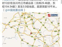 自贡网自贡网讯(记者 马莉莎)据中国地震台网正式测定:6月27日00时13分在四川内江市威远县发生3.0级地震。自贡有震感。
