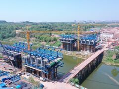 自贡网图:高铁连接线釜溪河3号桥自贡网讯(记者 李秋玥 摄影 周航宇)19日,记者来到自贡市东部新城二期基础设施建设第二项目高铁连接线釜溪河3号桥建设工地,施工现场热火朝天。据了解,釜溪河3号桥全长382m,桥面总宽度约60m,主桥为变截面连续箱梁,主要采取挂篮施工,桥梁下部结构已经全部完成,8个0号块浇筑完成,预计年底全桥合拢。