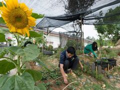 面朝沱江,有花有果,有秋千荡,还有一个玲珑的戏鱼池......最近,沿滩区瓦市镇大觉村九组贫困户吴宗友家,成为了乡里乡亲的“网红打卡地”,俨然一幅归园田居图。5月12日上午,位于大觉村宋家山顶的集中安置点,54岁的吴宗友和大女儿吴小萍正在门前花园里除草。多肉、向日葵、秀球、玫瑰,车厘子、葡萄、草莓、樱桃、桃子、李子……各种当红小清新花草、水果苗木被统统请进了园子。这是今年疫情期间老吴和孩子们的宅家