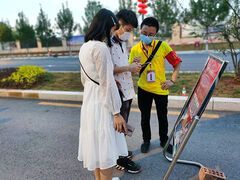 自贡网自第26届自贡国际恐龙灯会暨2020年全民抗疫主题灯会开园以来,一群佩戴印有“青年突击队”字样红袖章的年轻人活跃在彩灯大世界园区内外,开展观灯引导、秩序维护等服务,他们是灯会中的志愿者。3日晚上不到七点,志愿者叶超已经开始忙碌起来。“您好!请主动扫码,然后往前走。”这是他从4月30日开始从事灯会志愿服务以来每天重复上百遍的话。在距灯会入口两三百米处,设置有数十个游客行程轨迹查询扫码公告牌,叶超的工