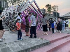 自贡网自贡网讯(记者 周姝)华灯初上,位于自贡市汇兴路一号桥下的文创公园,游客兴致勃勃,间隔排队秩序井然,吸引他们的是一场由自贡传统彩灯结合现代光影技术打造的大型“水上灯会”——“夜游釜溪”。记者从自贡市文化旅游投资开发有限公司获悉,“夜游釜溪”自复航以来,日均接到数百个留言和咨询电话。为在保障疫情防控措施前提下,尽力回馈广大游客,五一期间,“夜游釜溪”推行限流措施的同时实行滚动发航制度。小长假期间,共