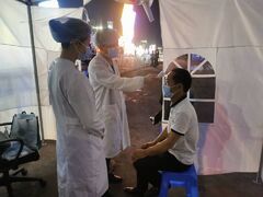 自贡网自贡网讯(记者 卜一珊)4月30日,自贡国际恐龙灯会正式重启。为做好灯会期间新型冠状病毒肺炎疫情防控工作,确保游客、工作人员及社会公共卫生安全,自贡市卫健委制定了医疗保障工作方案,在园区内外各设定一个医疗保障点。5月1日晚6点30分,已有游客陆续进入园区,医务人员在大门口对每位前来观灯的游客进行体温检测。“如果体温异常,安保人员会立即从专用通道护送游客至应急隔离留观室,由医护人员进行体温复检。”医