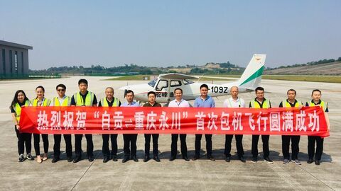 自贡网自贡网讯(李华 记者 缪静)上午在重庆永川“乐和乐都主题乐园”嗨玩,下午打个“飞的”来自贡看灯、吃盐帮菜,已经成为现实,空中行程只需40分钟!4月30日14时40分,一架火神V1.0型固定翼飞机从重庆永川大安通用机场起飞,平稳降落在自贡凤鸣通用机场,经短暂停留后返回永川大安通用机场,标志着“重庆永川-四川自贡”航线首次包机飞行保障圆满完成。当天,该包机于14时从永川大安通用机场起飞,14时40分降