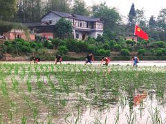 自贡网图:飞龙镇“党员助农突击队”帮助村民移栽水稻4月20日下午,富顺县飞龙镇新文村新安水库大坝下方的秧田里,几个身影挥汗如雨,胳膊上佩戴红袖标,身后鲜艳的党旗在春风中猎猎飘舞。“为了抢抓农时,我们组织了‘助农突击队’,帮助缺乏劳动力的脱贫户栽秧。”飞龙镇党委书记周礼麒介绍,该镇机关党员组成8支“党员助农突击队”,分赴各村开展春耕助农活动,与各村党员帮助缺乏劳动力的家庭开展春耕生产。图:飞龙镇“党员助农