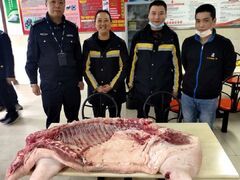 自贡网图:猪肉物归原主,张青容(左二)和刘波(左三)都很开心自贡网讯(记者 欧亚非)4月4日5时40分左右,自贡公交61路驾驶员张青容上班途经丹桂大街和汇川路交汇路口时,发现地面有遗落的猪肉,整整半只!为了能尽快将猪肉物归原主,她便叫上同路的同事刘波,一起将猪肉搬到了汇东公交客运站,交由车队代为保管。经过车队和派出所的多方联系,失主很快找到了,并及时到汇东公交客运站进行了认领。据失主称,这半只猪价值大概